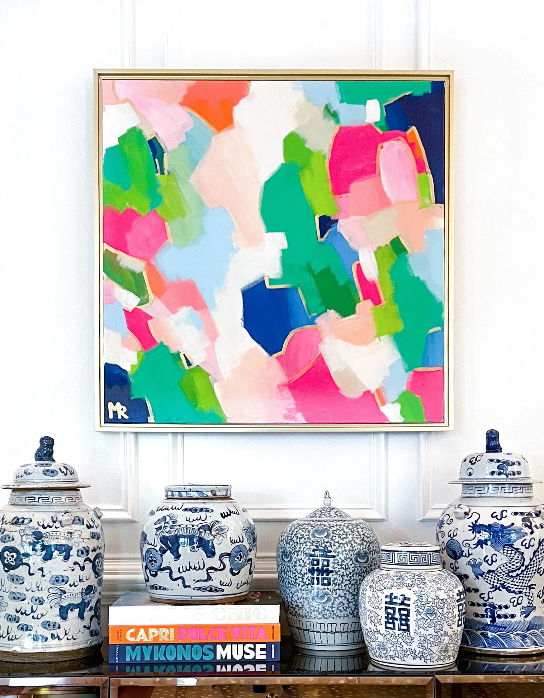 I also love Bridgerton because it’s a happy escape away from reality with colorful costumes and interesting characters. I like to think that abstract art is similar in many ways.